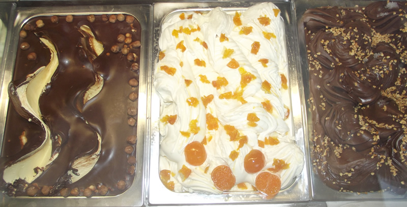 Glace de chocolat au lait avec des noisettes macérées dans l'alcool