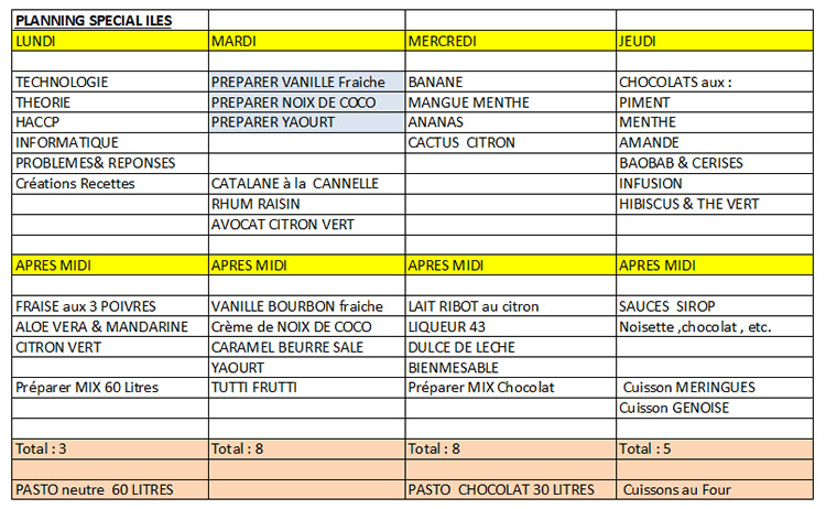 Les parfums de glaces et sorbets pour la formation seront en fonction du pays du futur glacier ( Du sur-mesure) .