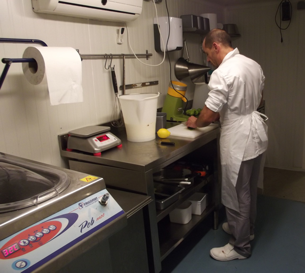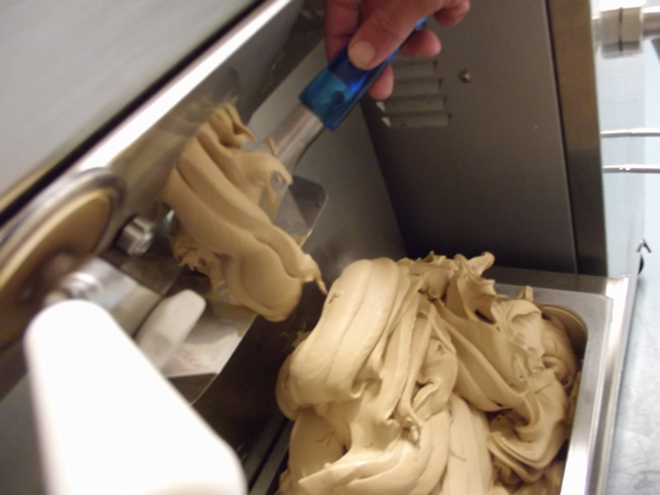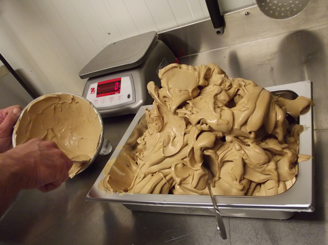 On Turbine ( on sangle) de la crème glacée au MOKA , pour les vacherins et bombe glacées .