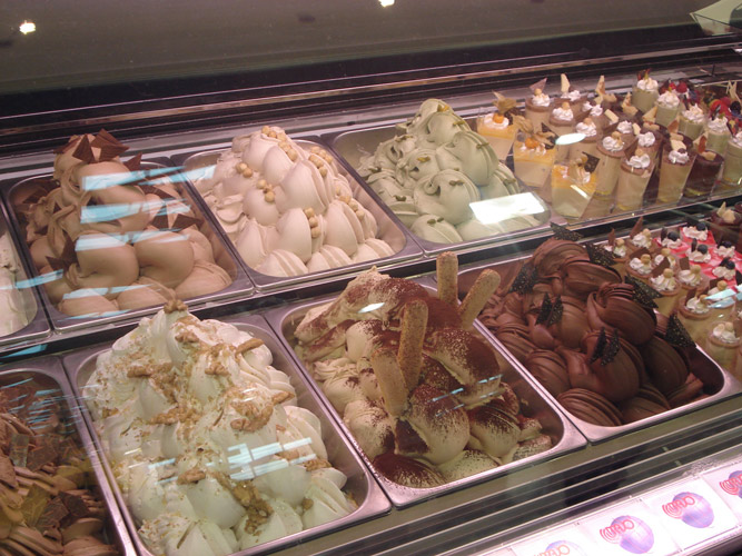 INTERIEUR DE VITRINES , PRESENTATIONS DE CREMES GLACEES