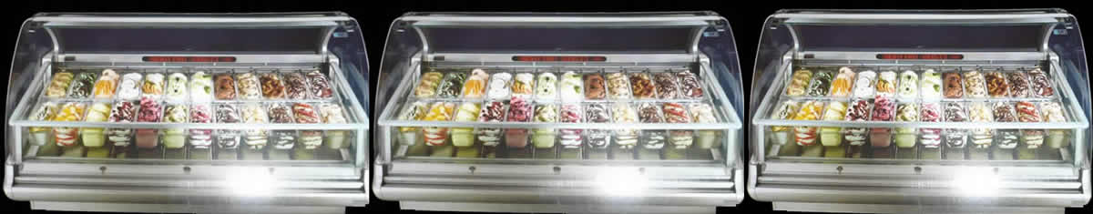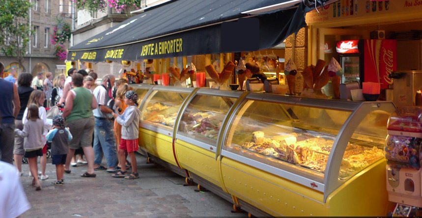 Pour attirer et vendre beaucoup de cornets , il faut présenter le plus possible de parfums , donc plusieurs vitrines à glaces sont nécessaires.