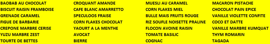 Exemple : Avec de la crème du fruit du BAOBAB et des morceaux de cocos caramélisés , des cerises et du chocolat noir ,